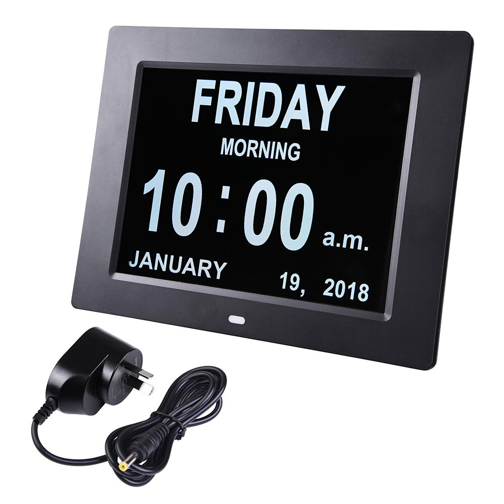 Clearly displays the date, time, month, year afternoon or morning in large, bold digits and letters without confusing abbreviations