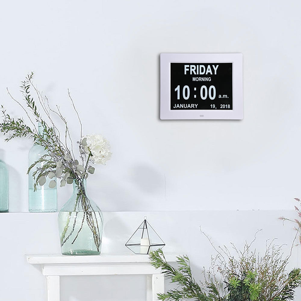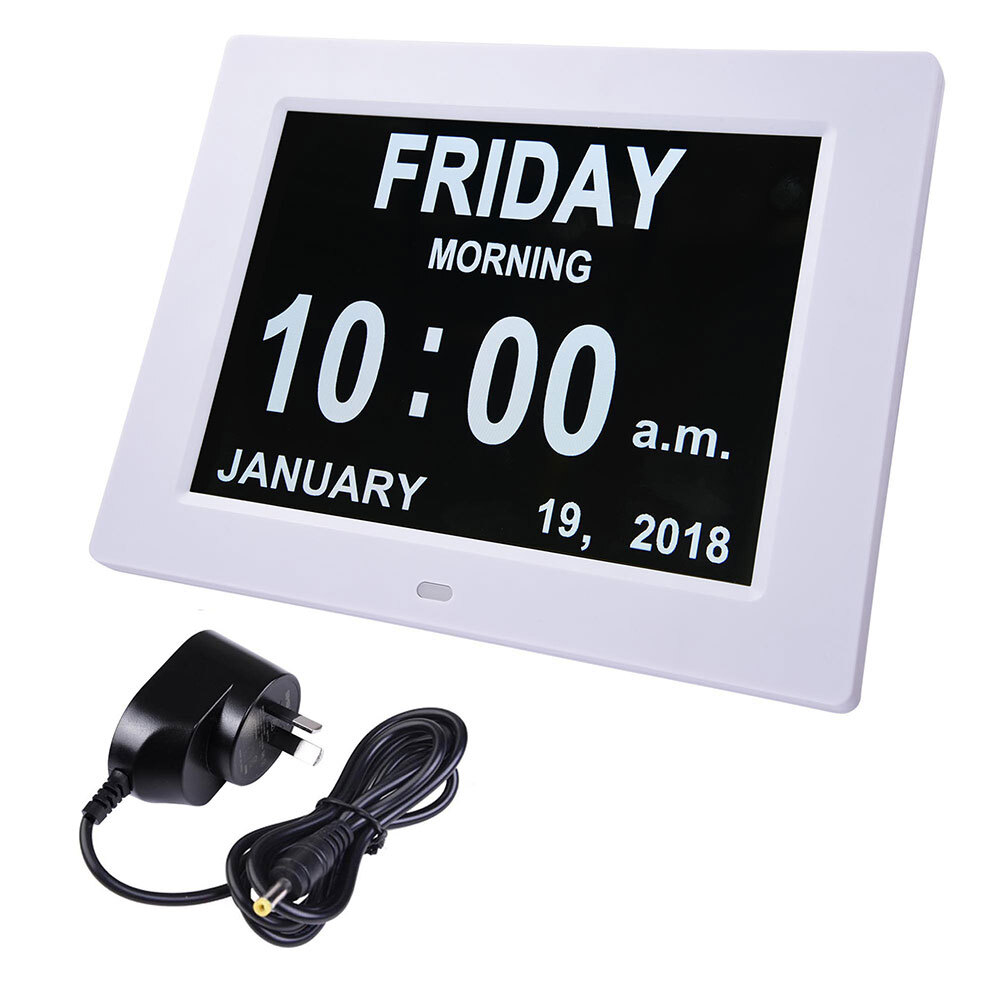 Clearly displays the date, time, month, year afternoon or morning in large, bold digits and letters without confusing abbreviations