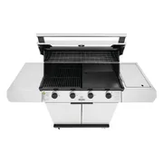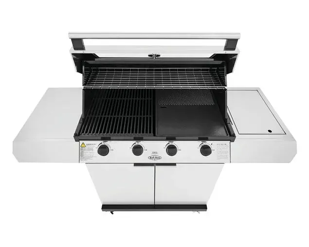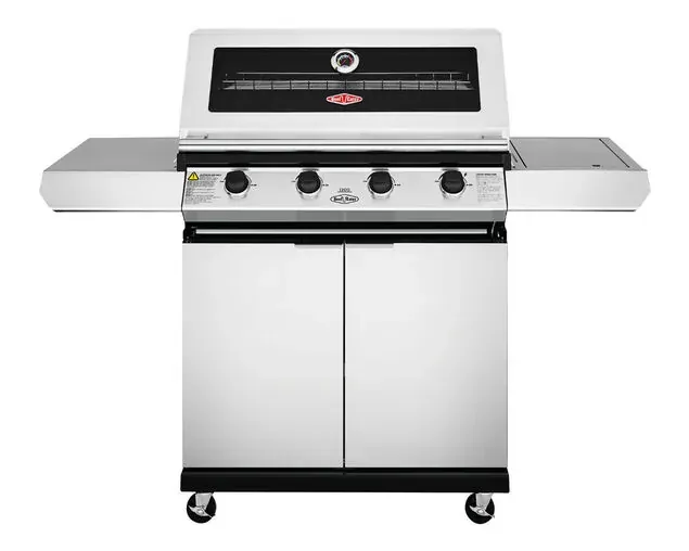 1200 Series Stainless Steel 4 Burner BBQ & Trolley w/ Side Burner, Cast Iron Burners & Grills