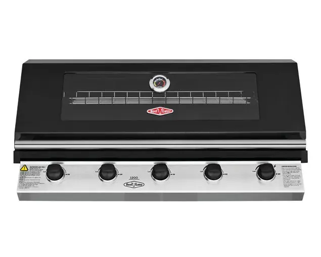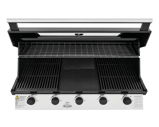 1200 Series Black Enamel 5 Burner Built In BBQ w/ Cast Iron Burners & Grills