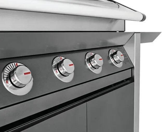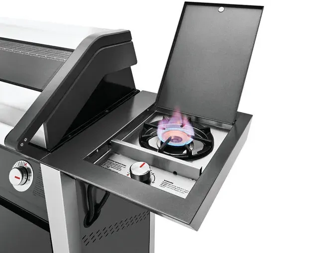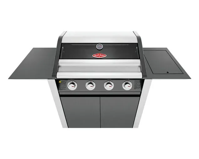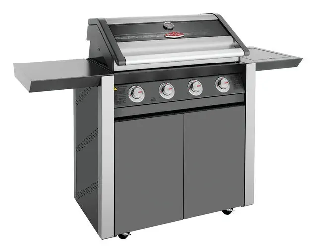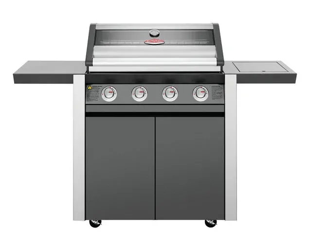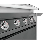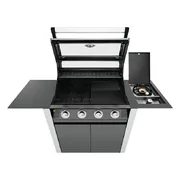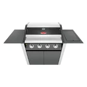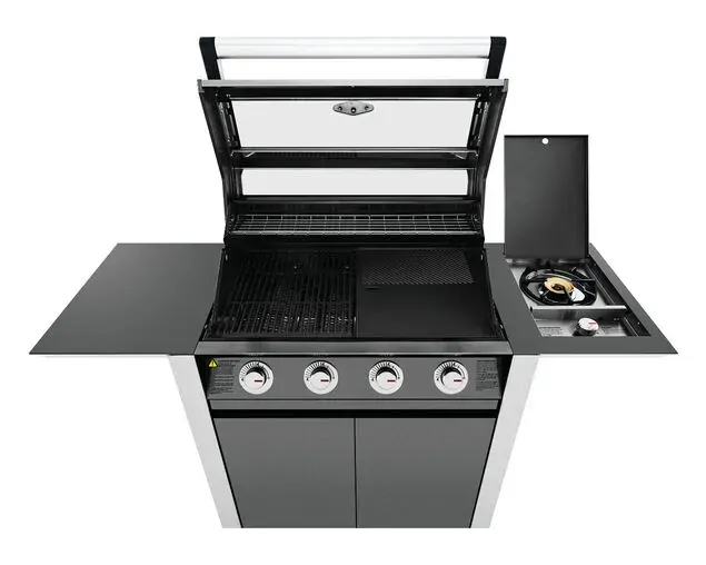 1600 Series Dark 4 Burner BBQ & Trolley w/ Side Burner, Cast Iron Burners & Grills