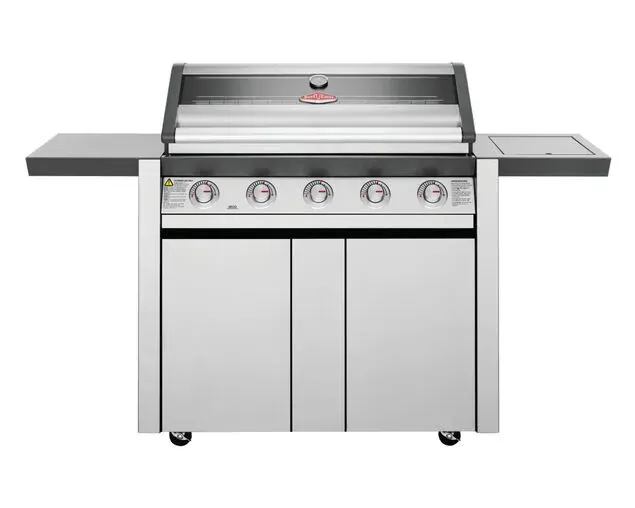 1600 Series Stainless Steel 5 Burner BBQ & Trolley w/ Side Burner, Cast Iron Burners & Grills