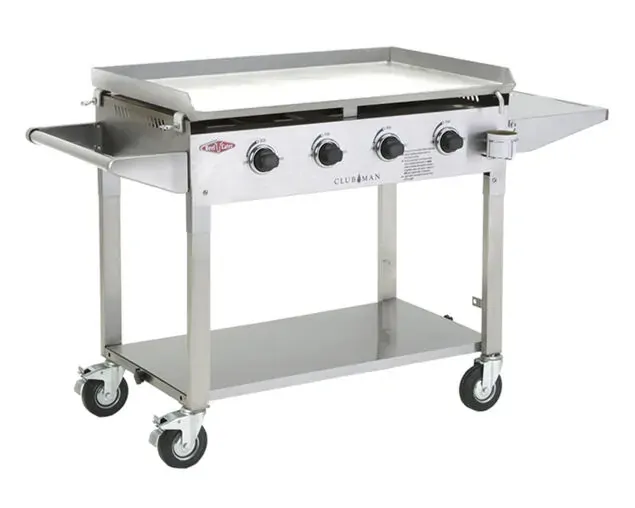 Clubman Stainless Steel 4 Burner BBQ & Trolley w/ Stainless Hotplate