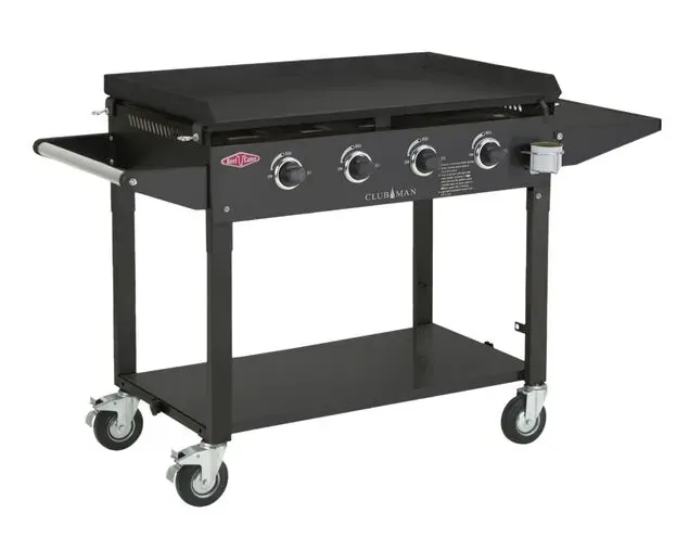 Clubman Black 4 Burner BBQ & Trolley w/ Cast Iron Burners & Hotplate