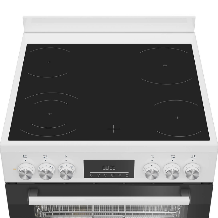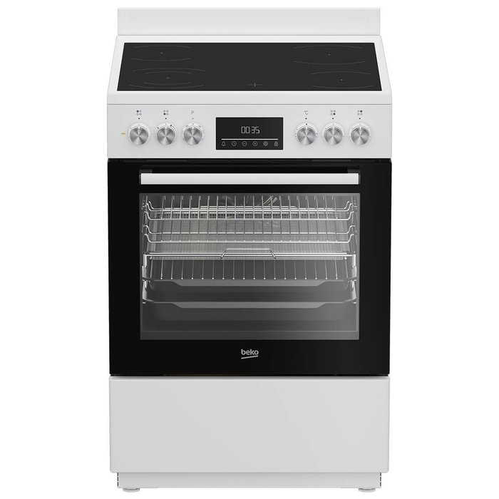 Designed for everyday cooks and growing families, the Beko Electric Freestanding Oven With Ceramic Cooktop brings together flexible cooking technology and convenient features in a classic 60?cm freestanding form. Its vitroceramic cooktop offers four radiant cooking zones, giving you space to simmer, boil, sauté or sear across multiple pans, all on a surface that’s sleek, responsive and easy to maintain.