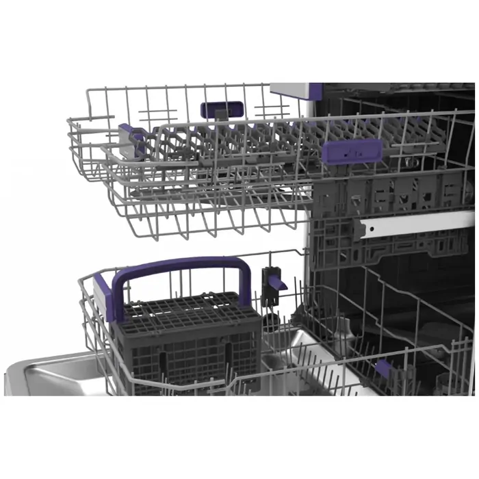 Equipped with smart connectivity through the HomeWhiz app, this dishwasher keeps you informed with cycle completion alerts and refill reminders, enhancing user control and convenience. Adjustable racks, including a height-modifiable upper basket and a dedicated cutlery tray, provide flexible space for various dish sizes and shapes. Even larger dinner plates and cookware fit comfortably without compromising the effectiveness of the spray arms.