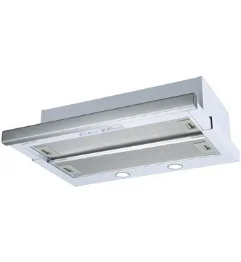 60cm Retractable Rangehood Grey Painted and Stainless Steel Front Panel Slide Switch control 430m3 ventilation capacity 3 power levels 2*3W LED illumination Aluminium Cassette filter