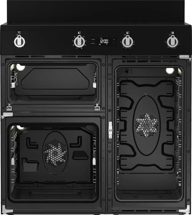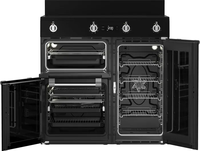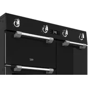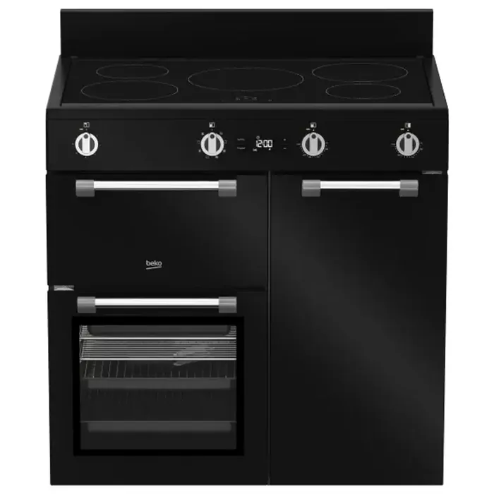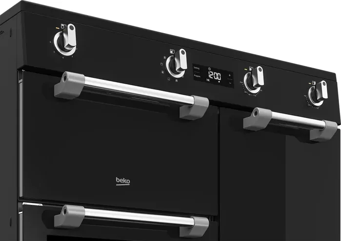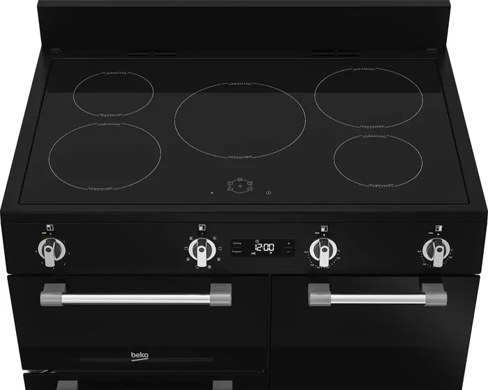 Perfect for big, busy families. The Beko BRC916IMB is a 90cm tiple cavity oven range cooker that combines style with the functionality of induction cooking. It features Two Fan Ovens, CleanZone, 90cm Five-zone Induction Cooktop and Separate Grill. Its sleek black finish will complement any kitchen, while its generous capacity allows you to cook for a large family or entertain guests.