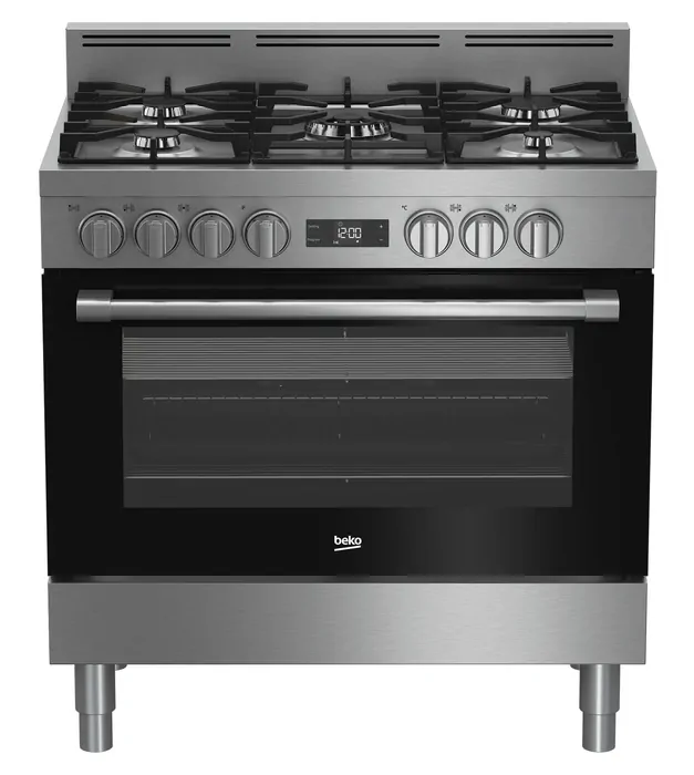 An appliance that can handle all your cooking needs. The Beko BFC916GMX1 is a freestanding cooker with a width of 90 cm. It features Halogen Illumination, High Efficiency Gas Burner, a gas cooktop with five burners and a large 130 L gross capacity electric oven with multiple cooking functions, including fan-assisted and grill options. It also has a digital display and a programmable timer.