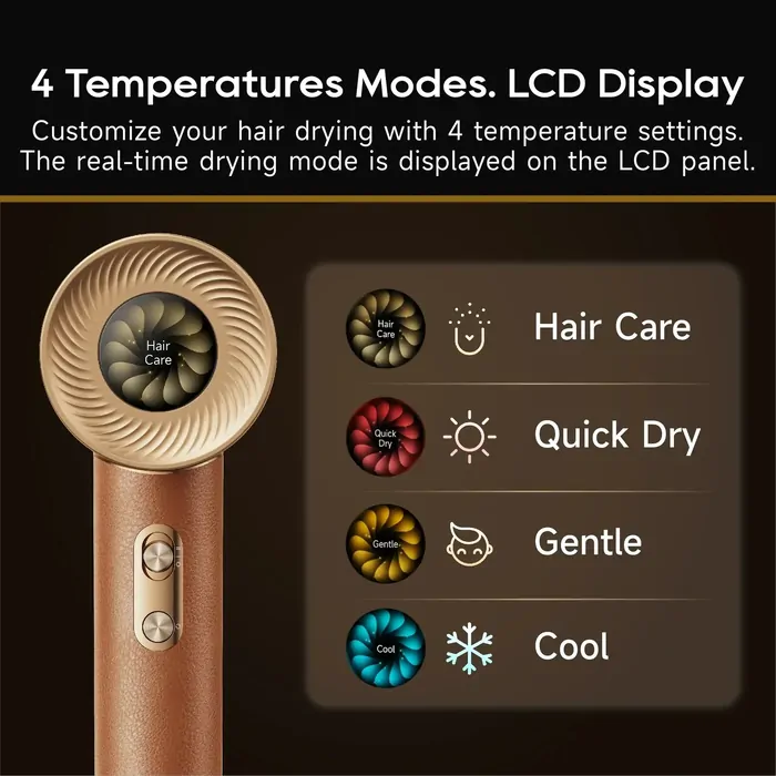 The Dreame Hair Miracle Hair Dryer offers four temperature modes and two airflow speeds, all visible on the intuitive LCD display, making it easy to customise the settings to suit any hair type or styling preference. Five magnetic attachments, including a diffuser, smoothing nozzle, styling nozzle, anti-frizz nozzle, and an essence nozzle, provide endless versatility for creating sleek looks, voluminous curls, or silky finishes.