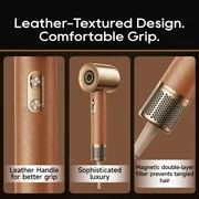 - The handle and body of the hairdryer are covered with a leather-like material, adding a touch of luxury to your styling routine