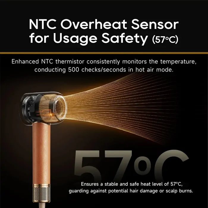 Equipped with 600 million negative ions per cubic centimetre, it neutralises static and seals the cuticle to reduce frizz and preserve moisture. The ultra-intelligent heat management system performs 500 measurements per second to deliver consistent drying temperatures, safeguarding hair from excessive heat damage.