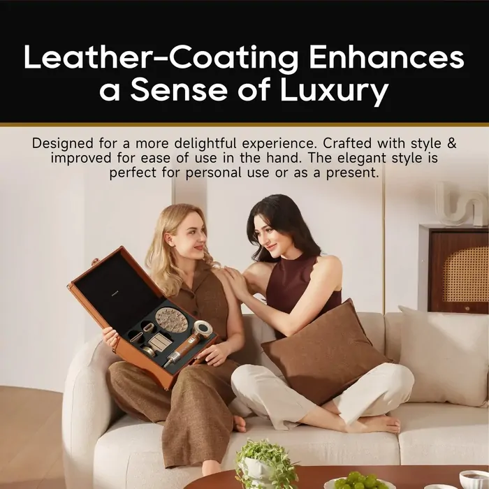 The thoughtfully designed handle and body are wrapped in a refined leather-like material that feels as premium as it looks, offering both style and comfort in hand. Despite its powerful performance, the dryer operates at a remarkably low noise level of just 57 decibels, ensuring a calm and pleasant experience. Compact and lightweight, it’s perfect for home use or travel, making professional-level results effortlessly accessible every day.