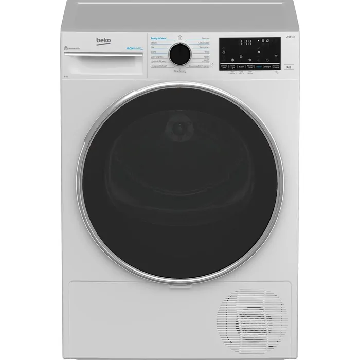 Boasting advanced features and a spacious drum, the Beko 8 kilogram Heat Pump Dryer with Steam ensures both efficiency and gentleness in drying all types of garments.