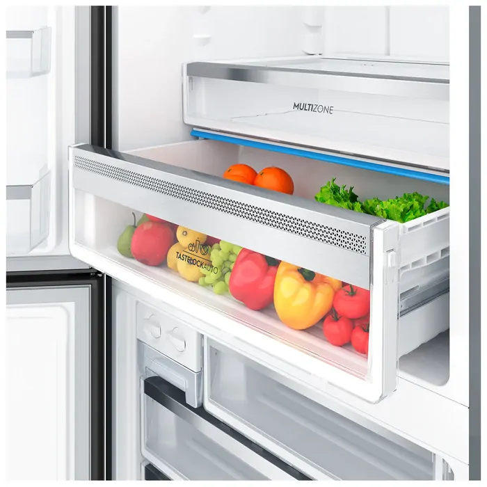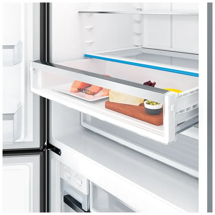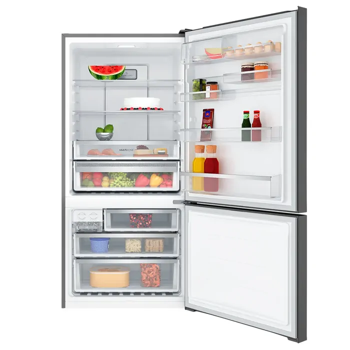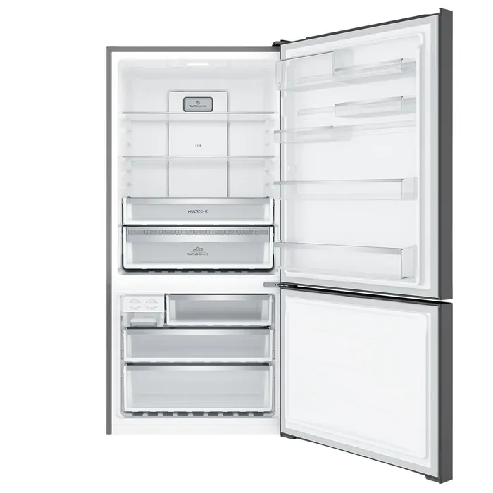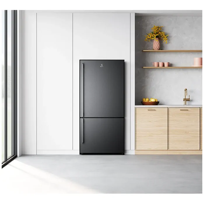 496L Matte Black Bottom Mount Fridge, Pole Handles, 6 Stars