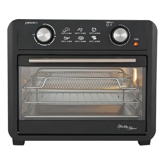23 LITRE AIR FRYER OVEN, 3 LAYERS SIMULTANEOUS COOKING,OVERHEAT PROTECTION, 4 ACCESSORIES,BAKING TRAY, WIRE RACK,PAN HANDLE AND MESH BASKET