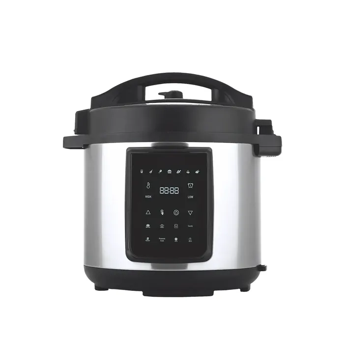 6 LITRE AIR FRYER PRESSURE COOKER, SLOW COOKER,RICE COOKER, SAUTE, 7 PRESET FOR COOKING , KEEP WARM, ACCESS. INCLUDING FRYING BASKET,ROASTING RACK ETC. SILVER