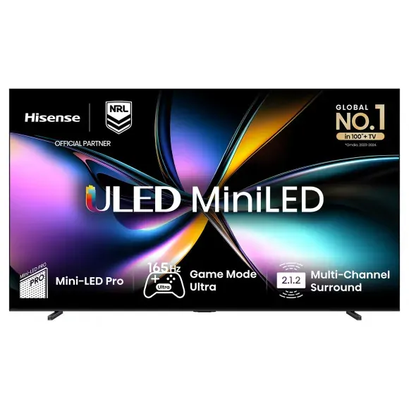 This massive 100" Hisense ULED Mini LED TV brings cinema-scale entertainment to your home with stunning 4K resolution. The Mini LED technology delivers incredible brightness and contrast, while Dolby Vision and HDR10+ Adaptive ensure you see every detail exactly as intended. Gamers will love the 165Hz refresh rate and FreeSync Premium PRO compatibility for smooth, tear-free action. The powerful sound system combines 2x15W main speakers with a 20W subwoofer and 2x5W side speakers for immersive Dolby Atmos audio. Running on the VIDAA U9 operating system, this smart TV makes finding your favorite content simple. Energy efficient with a 5.5 star rating, it's a sustainable choice for your entertainment needs. Backed by a 3-year warranty, the Hisense 100U7QAU delivers big-screen excitement without compromise.
