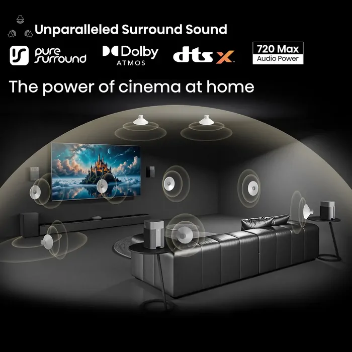 Experience immersive audio that flows around and above you. Dolby Atmos and DTS:X technologies produce multidimensional sound, bringing every soundtrack and effect to life with remarkable clarity and precision.
