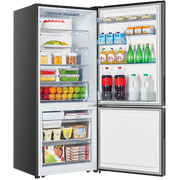 The Hisense 417L PureFlat Bottom Mount Refrigerator offers sleek design and innovative features for modern kitchens. Its PureFlat door design and recessed handles create a seamless, built-in look, while the counter-depth design maximises space.