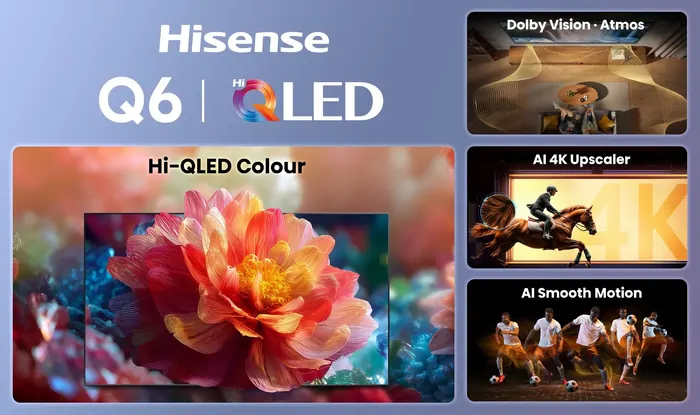 With vibrant Hi-QLED Colour, immersive Dolby Vision and Dolby Atmos, intelligent AI 4K Upscaling, and AI Smooth Motion, it delivers richer colour, clearer detail and smoother action for everyday viewing.