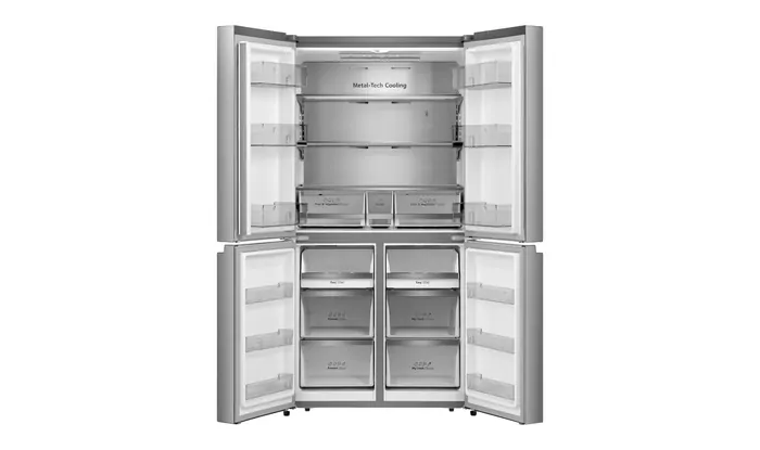 With a big capacity, there’s plenty of space in the fridge and freezer to store any shape or size of food. It also has four doors that open out wide, giving you better accessibility and enabling you to see everything at a glance.