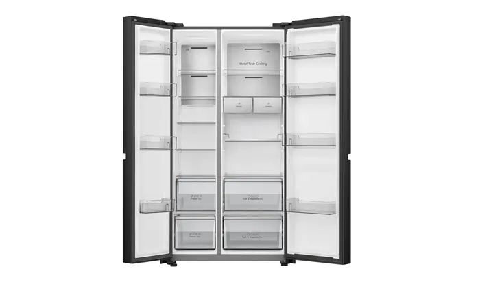 The 5.5 Star-rated Side-By-Side fridge is now the market leader in energy efficiency in the Side-by-Side category. Using Hisense’s most advanced refrigeration tech, such as the Durable Inverter Motor and Vacuum Insulation Panels, this fridge consumes only 347 kWh of energy per year, as opposed to a 3-star energy rated fridge that uses 545kWh a year, this means you’re helping the environment while saving money! Now that’s sustainability & efficiency, side-by-side. *As of August 23rd 2023, when compared to a 3-Star Rated Side By Side fridge