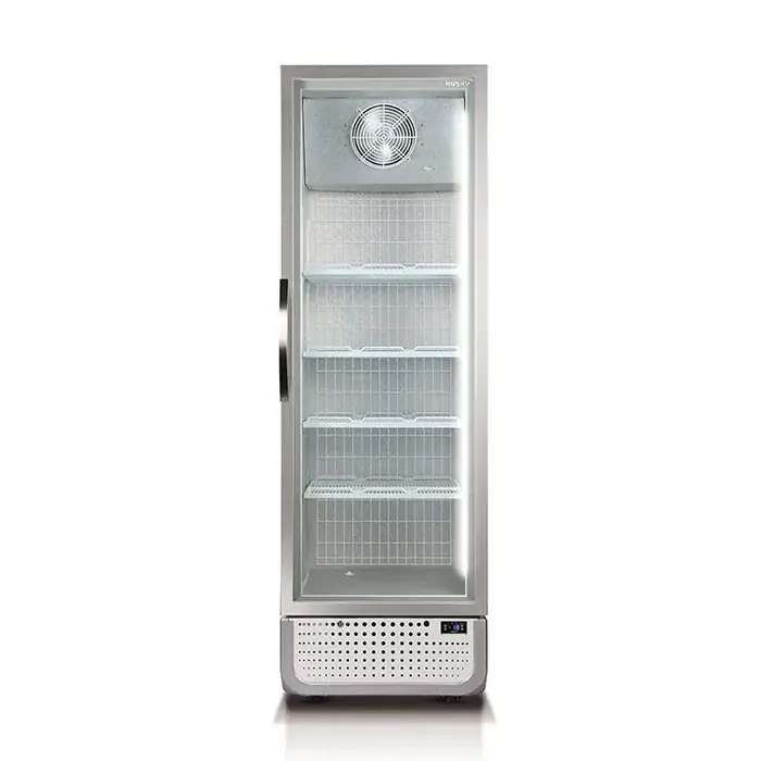 Featuring a large 364 litre gross total capacity, the Husky Single Door Vertical Glass Door Commercial Freezer in white finish is the ideal solution for any commercial or retail setting. This PRO range upright display freezer has its entire R290 refrigeration mechanism mounted on a sled which is accessible from the front, making it easy to swap components and make repairs. The powerful compressor cooling system provides freezing capability down to -25 degrees Celsius with an electronic temperature control allowing you to easily set the unit to the desired temperature. A full length LED illumination system with on/off switch and fully adjustable shelving offers great visibility and flexibility. The triple glazed glass doors offer superior insulation helping to delivery an energy efficient outcome that looks impressive.