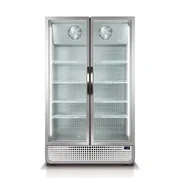 Featuring a large 842 Litre Gross total capacity, the Husky Double Door Vertical Glass Door Commercial Freezer in white finish is the ideal solution for any commercial or retail setting. This PRO range upright display freezer has its entire R290 refrigeration mechanism mounted on a sled which is accessible from the front, making it easy to swap components and make repairs. The powerful compressor cooling system provides freezing capability down to -25°C with an electronic temperature control allowing you to easily set the unit to the desired temperature. A full length LED illumination system with on/off switch and fully adjustable shelving offers great visibility and flexibility. The triple-glazed glass doors offer superior insulation helping to deliver an energy-efficient outcome that looks impressive.