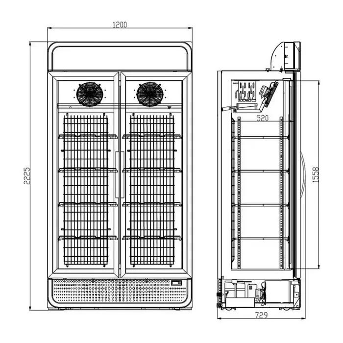 - Triple-glazed and heated doors for improved insulation whilst preventing condensation build-up