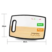 No More Cross Contamination Large Simply flip the Double Sided Chopping Board over and you have the polypropylene side, that is specifically designed for preparing fish, poultry and meat. It is 100% water resistant and has a smooth easy clean surface reducing the chance of bacteria growth and chance of cross contamination. The polypropylene is also BPA free and soft enough not to dull or damage a knife blade. Dimensions: 38cm x 39cm - 1100g