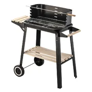 TROLLEY BARBEQUE, WOODEN TROLLEY WITH WOODEN WHEELS,CHROMED COOKING GRILL, COOKING AREA 48.5 X 28.5CM COOKING HEIGHT 70-85CM,