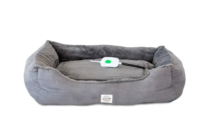 SMALL PET BED WARMER, 2 HEAT SETTINGS, REMOOOOVABLE HEAT PAD,• SOFT & WARM RABBIT FAUX FOR COVERING, DIMENSIONS 55 X 45 X 18CM