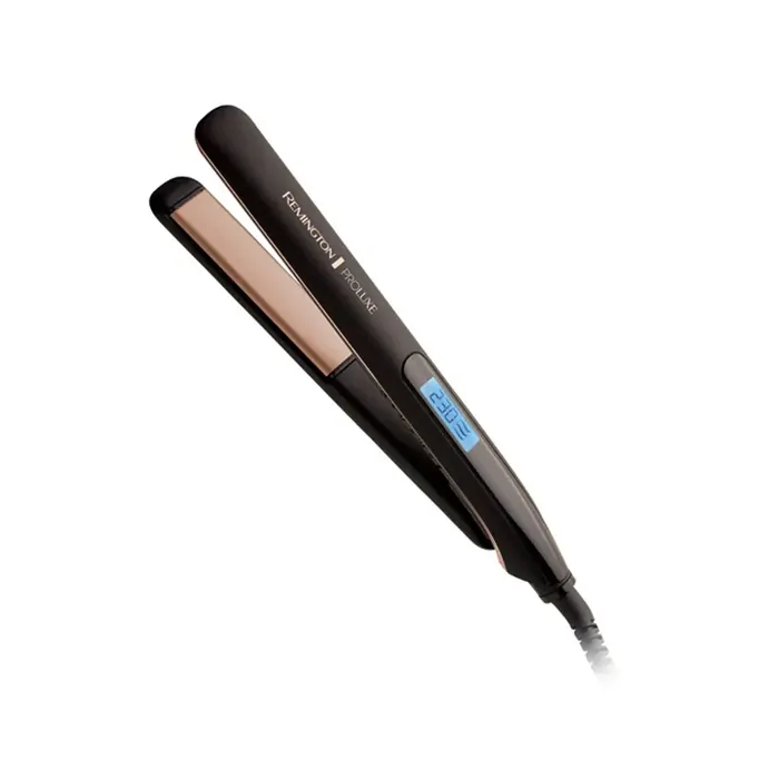 PROluxe Salon Straightener Intelligent PROheat Sensor Technology provides consistent heat for salon results that last all day* 47% straighter hair in one pass** Ultimate Glide Ceramic Coating 5 x smoother† for effortless glide and silky smooth results 15 x more ceramic† to deliver superior high even heat 5 x longer lasting† ensures plate durability Digital variable heat settings 150°C – 230°C, 10 temperature settings PRO+ Setting at 185°C for healthy styling 10 second instant heat up Informative digital temperature display Memory function remembers the last temperature used 110mm floating plates for constant contact & fast styling Automatic safety shut off Hinge lock, salon length 3m swivel cord Worldwide voltage * Styles shown to last 24 hours in laboratory trials ** vs standard Remington straightener † vs standard ceramic coating