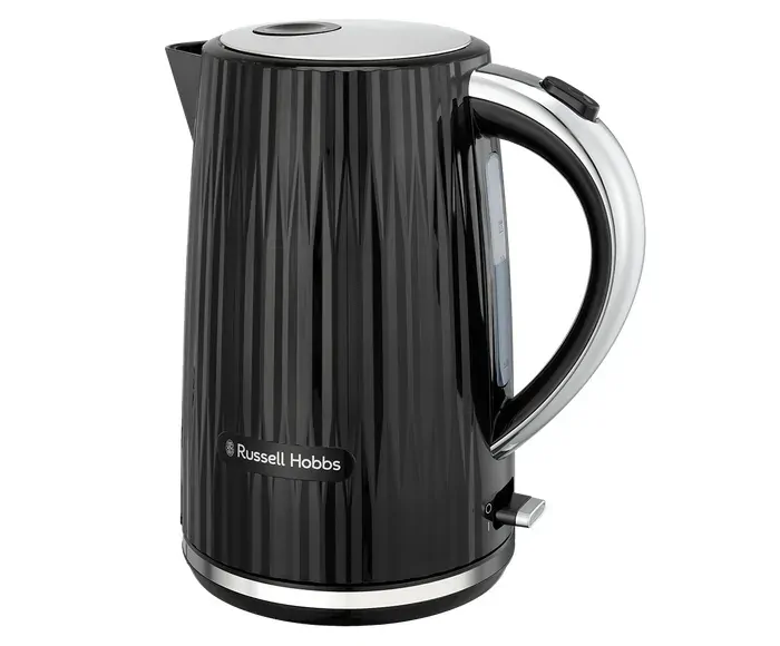 Eden Kettle - Black Stylish textured design with chrome accents 2400W 1.7L capacity Push to open lid Water window with gauge? 360°C base with cord storage Perfect pour spout Illuminated switch during boil 61cm cord length