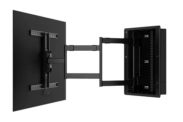 Suits TV Sizes 42-85"Extends 1.27 - 71.12cm Swivel ±67° Tilt 4/-10°. FluidMotion™ for effortless TV movement, Slim FollowThru™ in-arm cable management for easier cabling, Sits just .5" from the wall when recessed, Six attachment slots with included velcro to secure components, In-wall box fits between two 16" on center studs