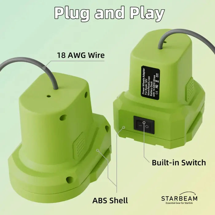 • Portable Power Source: Use Ryobi 18V ONE+ batteries for convenient off-grid operation of your Starlink Mini.