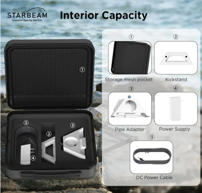 • Compact yet spacious: Accommodates the full Starlink Mini kit, including the dish, cables, and small accessories, without wasted space.