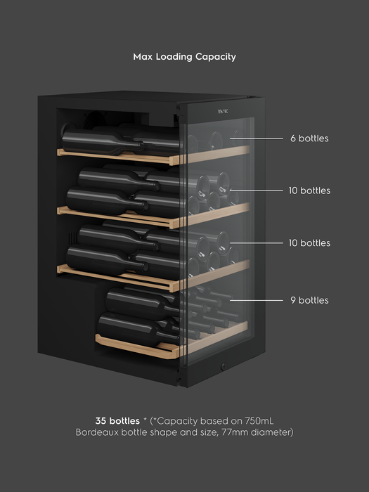 35 bottles UC wine cabinet, full black door, fixed compressor