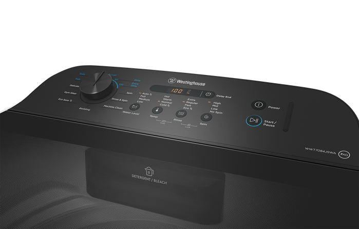 7kg capacity top load washing machine with easy to use controls, 3 fast wash programs and durable soft close glass lid.Delay end option to plan when your wash finishes