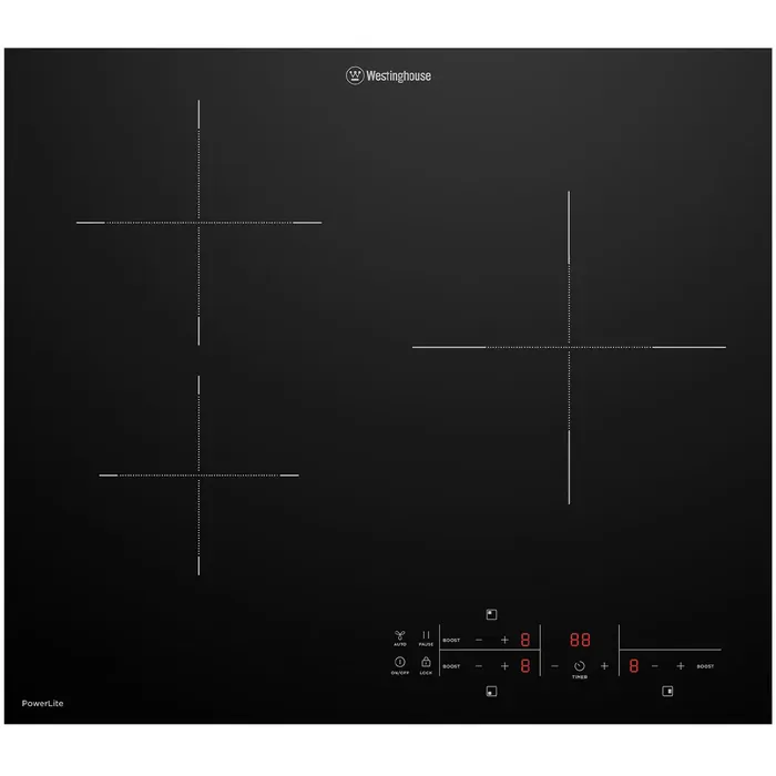 60cm 3 zone PowerLite induction cooktop with Hob2Hood, PowerBoost, Pause and touch slide controls.