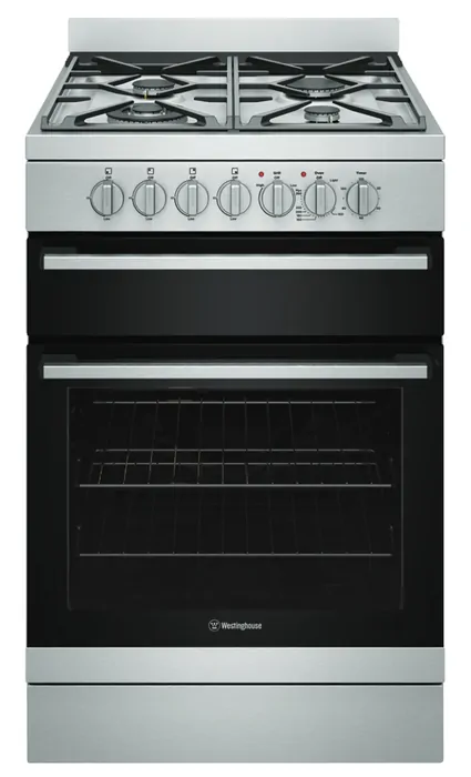 60cm stainless steel dual fuel freestanding cooker with separate electric grill, fan forced electric oven, 120 minute timer with ringer, 4 burner gas cooktop with 14.2 mj/hr wok burner and cast iron trivets.