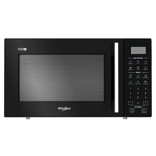 Upgrade your kitchen with the Whirlpool MWP298BAUS 29L Microwave with AirFry - designed for healthier, smarter cooking. This sleek freestanding microwave features a built-in air fryer for crispy meals with little to no oil, a detachable rotisserie for perfectly roasted meats, and Forced Air technology for even heat circulation and oven-like results. With over 300 pre-programmed Chef Menu recipes, you’ll enjoy a wide range of effortless meal options, from reheating and baking to grilling and air frying.