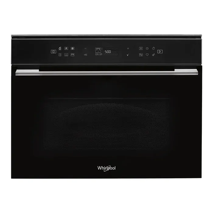 Discover the Whirlpool W7MWBLAUS 45cm Built-In Combi Microwave, a top choice for modern kitchens. This sleek appliance boasts a fingerprint-resistant black glass LCD display, electronic touch sensor controls, and a durable stainless-steel cavity. Safety is ensured with a child lock feature, and an acoustic signal notifies you when your food is ready.