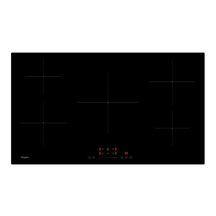 The Whirlpool 90cm 5-Zone Built-In Induction Cooktop offers advanced cooking technology and versatile functionality. Its sleek black ceramic glass surface features five cooking zones, each with Booster settings for rapid heating, and a flexible power range across 9 levels. With features like the Stop & Go function to pause cooking, a child lock for safety, and pan detection, this cooktop is both powerful and convenient.